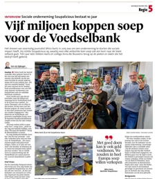 Lees verder..Het streven om sociale impact te maken met het maken van soep heeft de krant gehaald: inmiddels 5 miljoen koppen soep naar de Voedselbank!